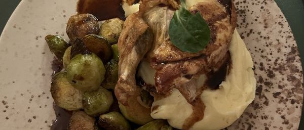 Von Anfang an gab es sehr guten Service vom Peronal, wissend das nur ein Hauptgericht berechnet werden kann. In der feinen, sehr übersichtliche Speisekarte des Abends fand ich sehr schnell das für mich passende Gericht. Ich entschied mich zur Vorspeise die getrüffelte Kartoffelsuppe zu probieren. Hauptgericht wurde die Perlhuhnbrust aus dem Ofen, mit gebratenem Rosenkohl und Kartoffelbrei. Hört sich erst mal nicht so spektakuler an, war aber mega lecker. Meine Begleitung entschied sich für Rindergeschnetzeltes aus dem Rücken mit Rotweinjus, Zwiebeln und Kartoffelbrei.