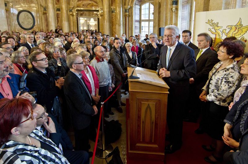 „Baden-Württemberg hat einen erfolgreichen Weg hinter sich und ist heute ein wichtiger Impulsgeber in Deutschland. Nur mit der Hilfe und der Unterstützung der Menschen hierzulande können wir diese Erfolgsgeschichte auch in Zukunft fortsetzen“, betonte der Ministerpräsident. Jede Art von Engagement sei eine Bereicherung des alltäglichen Lebens und eine Stütze der Gesellschaft. „In Baden-Württemberg soll eine neue politische Kultur entstehen. Wir wollen den Bürgerinnen und Bürgern auf Augenhöhe begegnen und mehr Bürgerbeteiligung auf allen Ebenen ermöglichen“, sagte Kretschmann. „Eine moderne, lebendige und starke Demokratie lebt von der Beteiligung der Menschen.“ Daneben wolle man wichtige Zukunftsthemen anpacken. Zentrale Aspekte seien die ökologische Modernisierung, die mit der Energiewende bereits eingeleitet worden sei, aber auch eine nachhaltige Bildungs- und Haushaltspolitik.